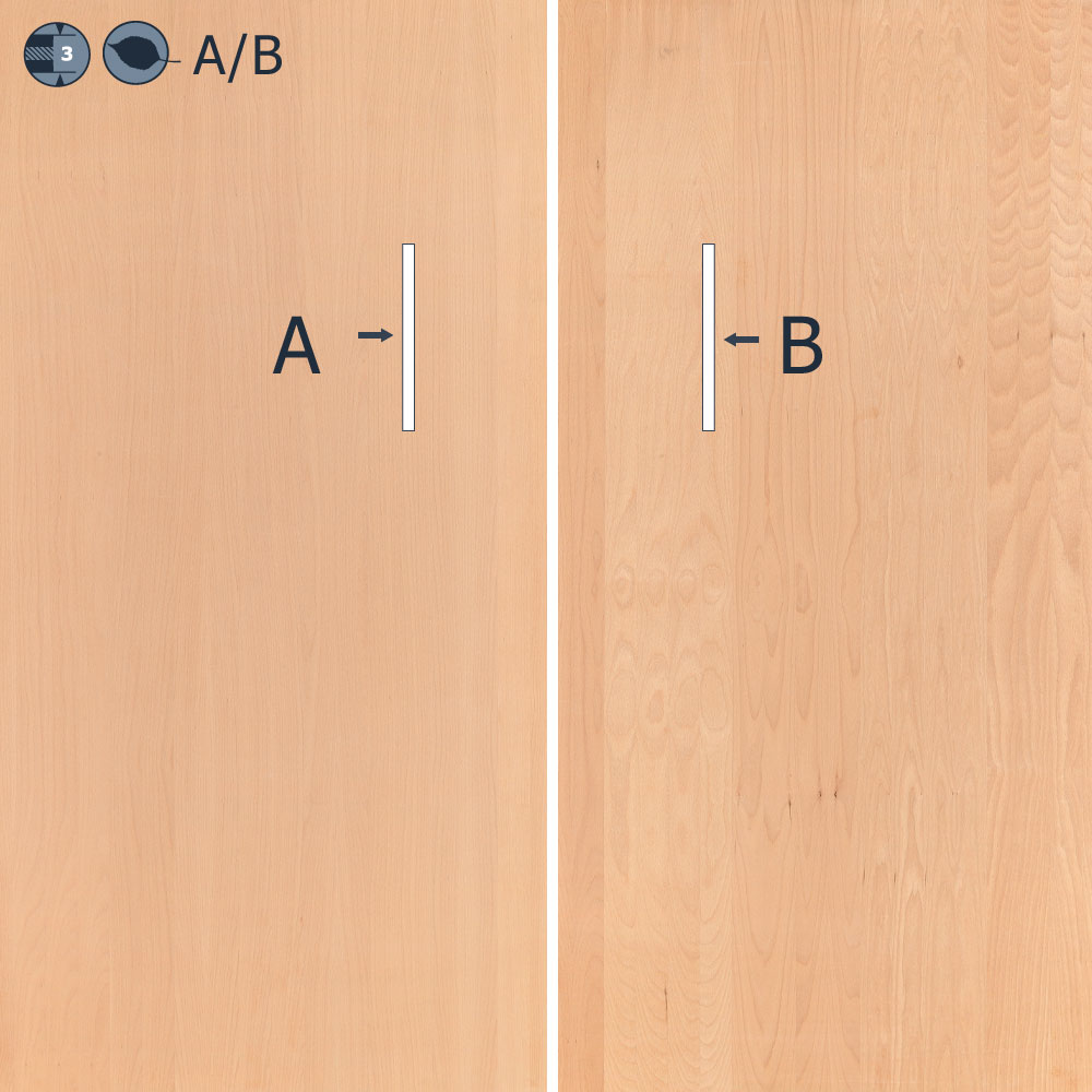 Fugendichte, farblich sortierte Oberfläche, kräftige und ausgeprägte Holzzeichnung, sowie Äste und vereinzelt Naturastdübelungen zulässig.